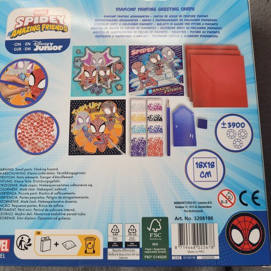 Breng kleur en plezier tot leven met deze geweldige Spidey knutselset! 🕷️✨ Met Spider-Man en zijn vrienden zoals Ghost-Spider maak je de mooiste sprankelende kaarten met diamond painting.
