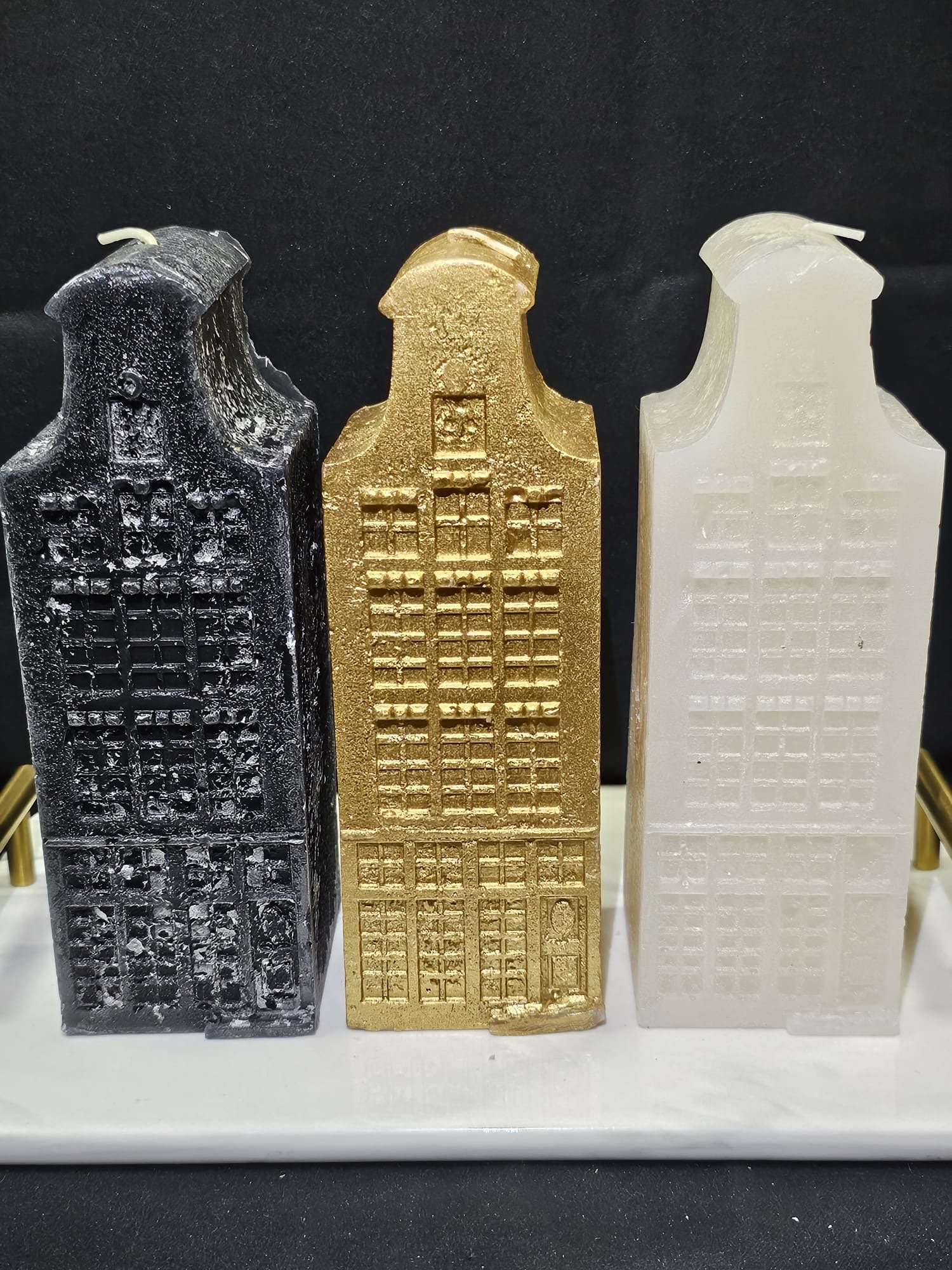 Sfeervolle Set van 3 Grachtenpand Kaarsen – Daan Kromhout Design Breng de charme van Hollandse grachten in huis met deze gave set van drie kaarsen van het trendy merk Daan Kromhout Design! Deze prachtige kaarsen, elk 7×7 groot, zijn vormgegeven als klassieke grachtenpandjes en zorgen voor een warme, nostalgische sfeer. Perfect om je interieur tijdens de koude maanden extra gezellig te maken, voor op de feestelijk gedekte kersttafel of als sfeervol cadeau.