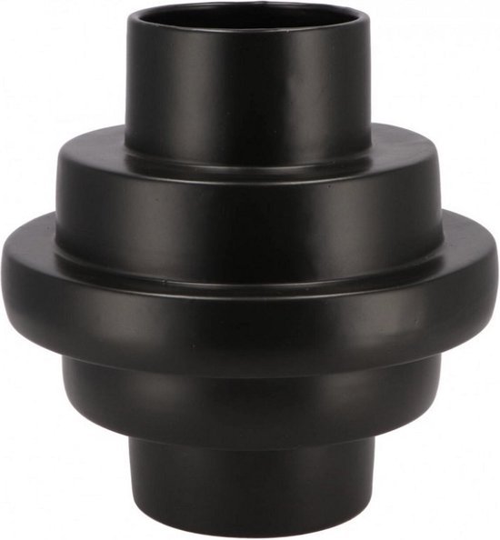 Deze stijlvolle vaas combineert een strakke matte zwarte afwerking met een subtiel trapsgewijs design. Perfect om solo te stylen als eyecatcher, of te vullen met droogbloemen, takken of een compact boeket. Dankzij het tijdloze ontwerp past de vaas moeiteloos in zowel moderne als minimalistische interieurs.