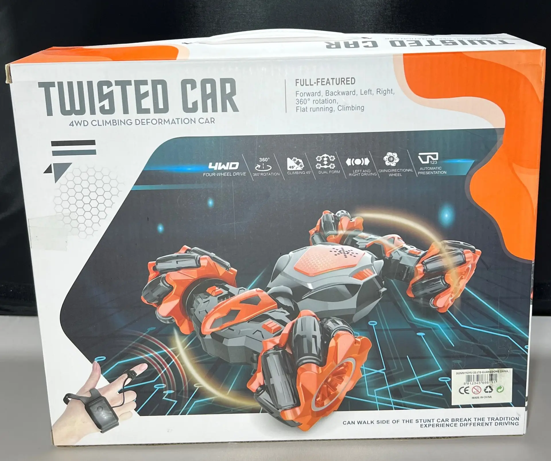 Set bevat een afstandsbediening die de stuntauto transformeert, afstandsbediening met handsensor, afstandsbediening en een USB-oplaadkabel – lichtgewicht en draagbaar ontwerp, ideaal voor op reis en onderweg!