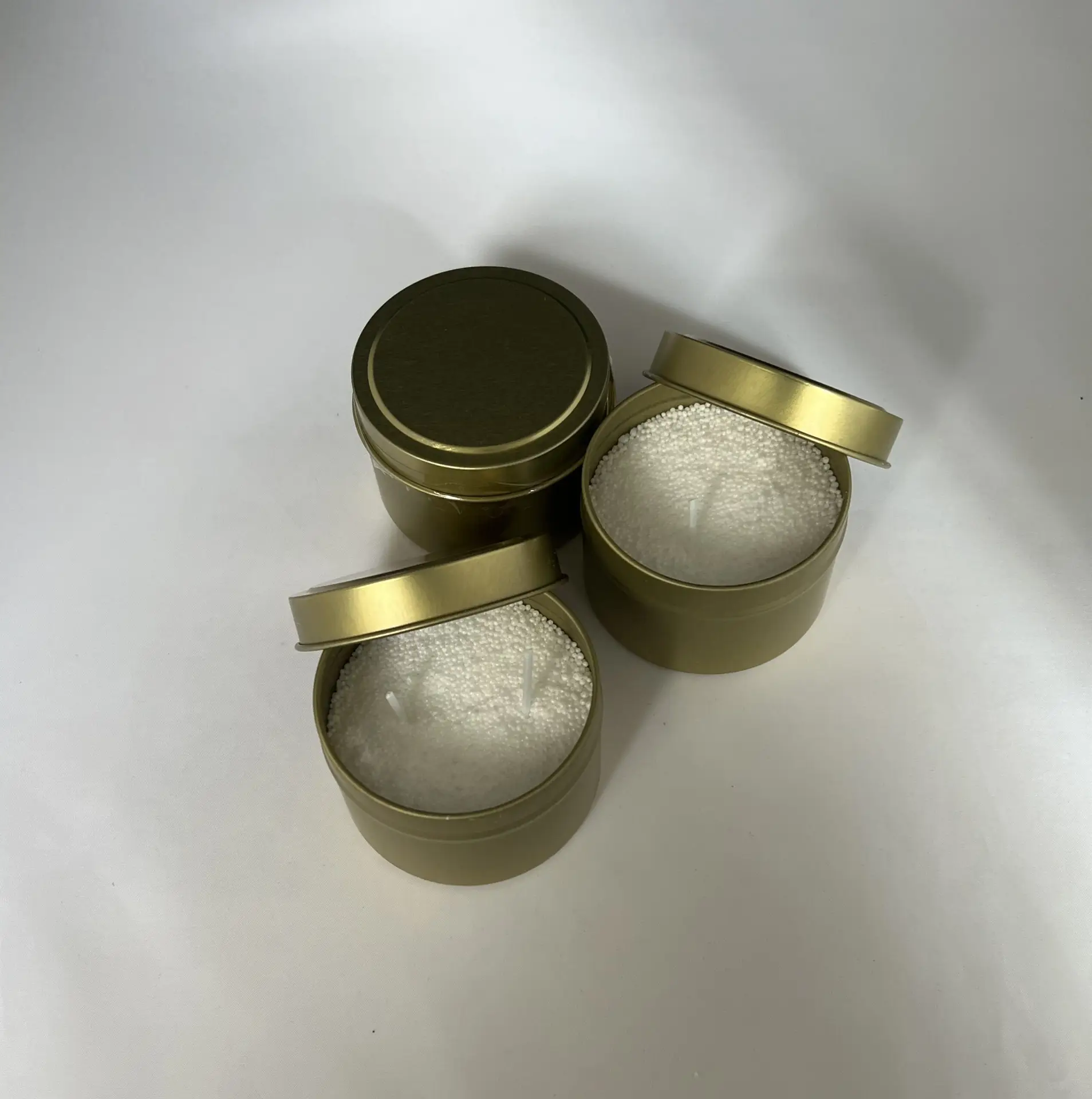 Plaats een of meerdere lonten erin, met een klein stukje boven het kaarsen zand uit.